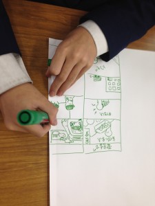 今日は、中学生もこの問題に真剣に取り組んでいました。講話後のワークショップでは、